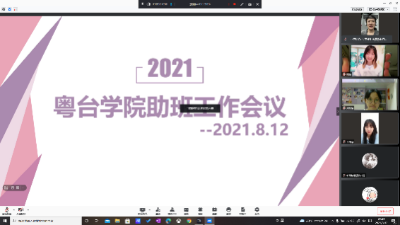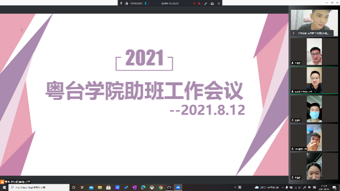 2021年8月12日,sunbet申搏根据公司疫情防控要求,组织2021级助理班主任召开线上培训工作会议,为下一步的助班迎新服务工作做好准备。