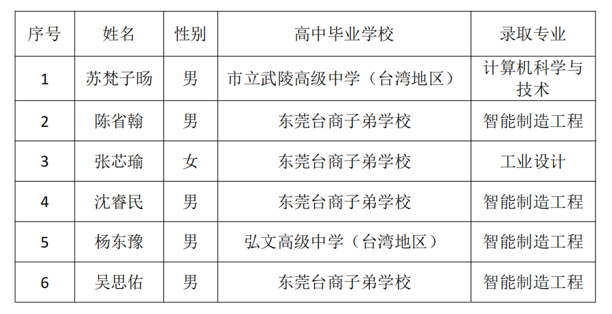 根据教育部有关文件和《sunbet申搏2022年依据台湾地区大学入学考试学科能力测试成绩招收台湾地区高中毕业生招生简章》等文件精神,经过报名审核、评委面试,现将拟录取名单和拟录取专业予以公示,公示期为2022年4月29日- 5月12日。若对成绩有疑问者,请于公示期内提出,过期不再受理。