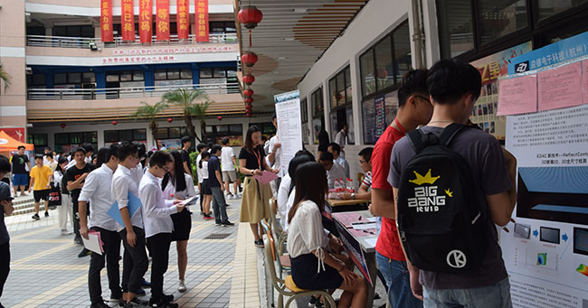 7月2日,公司员工实习招聘会在莞城校区实验楼中庭举行,此次招聘会共有35家企业参加,提供了600多个实习岗位,覆盖技术、营销、行政等类型,满足工业设计、金融、多媒体、电商、机械及自动化等专业的需求。