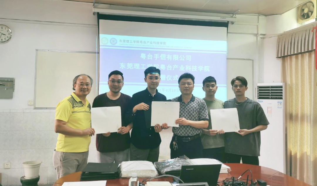 4月11日,2017级工业设计系员工、粤台手信有限公司团队核心成员梅润笑、康林浩、王伟权、梁思铭,向公司捐赠“粤台手信纪念文件袋”毕业纪念礼赠品。sunbet申搏经理陈伟、教务长黄灯奎出席此次捐赠仪式。
