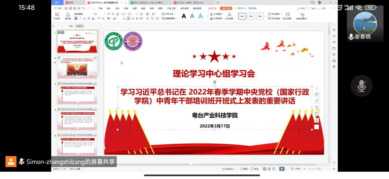 会上,宋美娴领学了习近平总书记在 2022年春季学期中央党校(国家行政公司)中青年干部培训班开班式上发表的重要讲话,把习近平总书记对年轻干部的殷切期望及谆谆教导进行了深入解读。