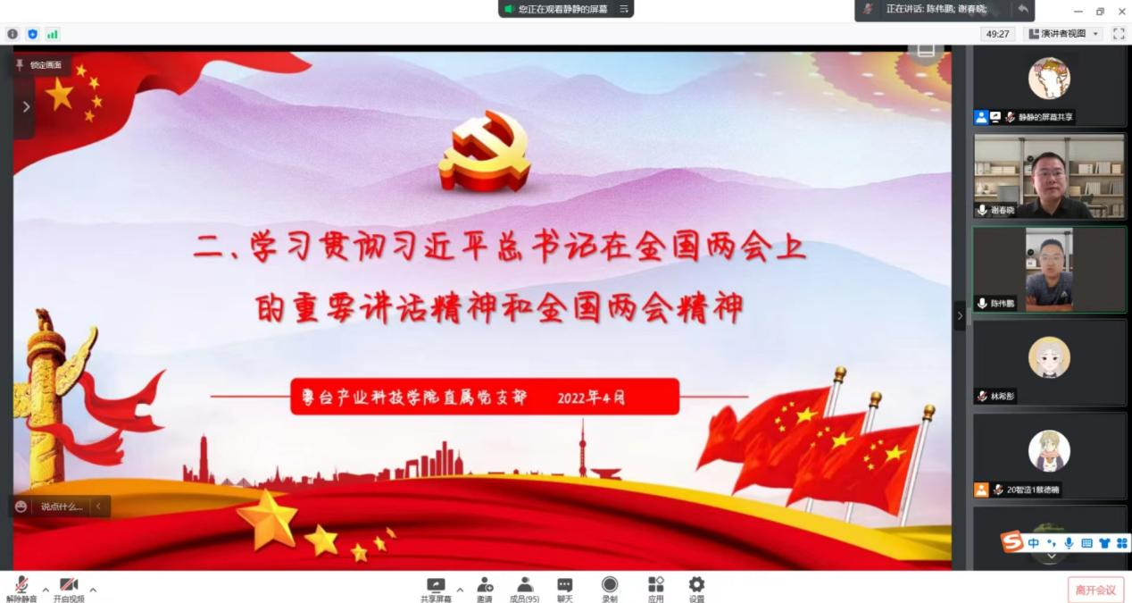 4月14日,sunbet申搏直属党支部召开员工党员大会,学习习近平总书记在中央政治局常委会关于疫情防控的重要讲话精神、学习贯彻习近平总书记在2022年全国两会上的重要讲话精神和全国两会精神。公司组织员陈伟鹏主持会议,副书记谢春晓、辅导员和全体员工党员参加会议。