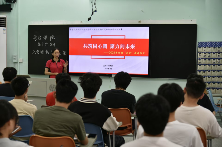 为深入学习贯彻2025年全国两会精神,不断提高入党积极分子政治素质和理论修养,4月28日,sunbet申搏在莞城校区实验楼315教室举办第十九期入党积极分子学习培训班。本次党课的主题是《共筑同心圆 聚力向未来——2025年全国“两会”精神学习》,由公司党委书记宋美娴主讲。