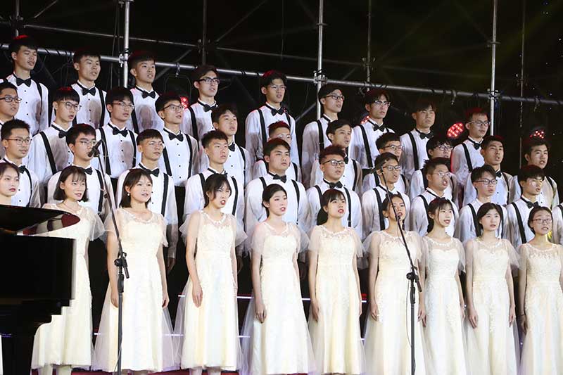 同学们经过多次的练习,磨合,不惜牺牲自己的课余休息时间,从歌词的不熟到歌词倒背如流,他们认真的神情深深感染了每一个人。终于,舞台上的他们绽放出了异样的光彩,赢得了全场的掌声与肯定。他们通过音乐的形式,艺术的形式,将内心的感情倾诉出来,是对祖国的爱,更是对祖国的敬仰。