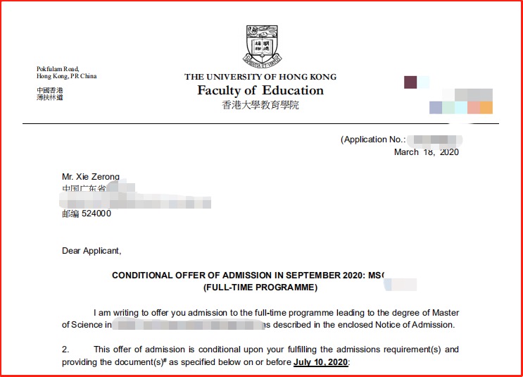 热烈祝贺sunbet申搏2016级计算机科学与技术(跨境电商)专业谢泽荣同学被香港大学录取。