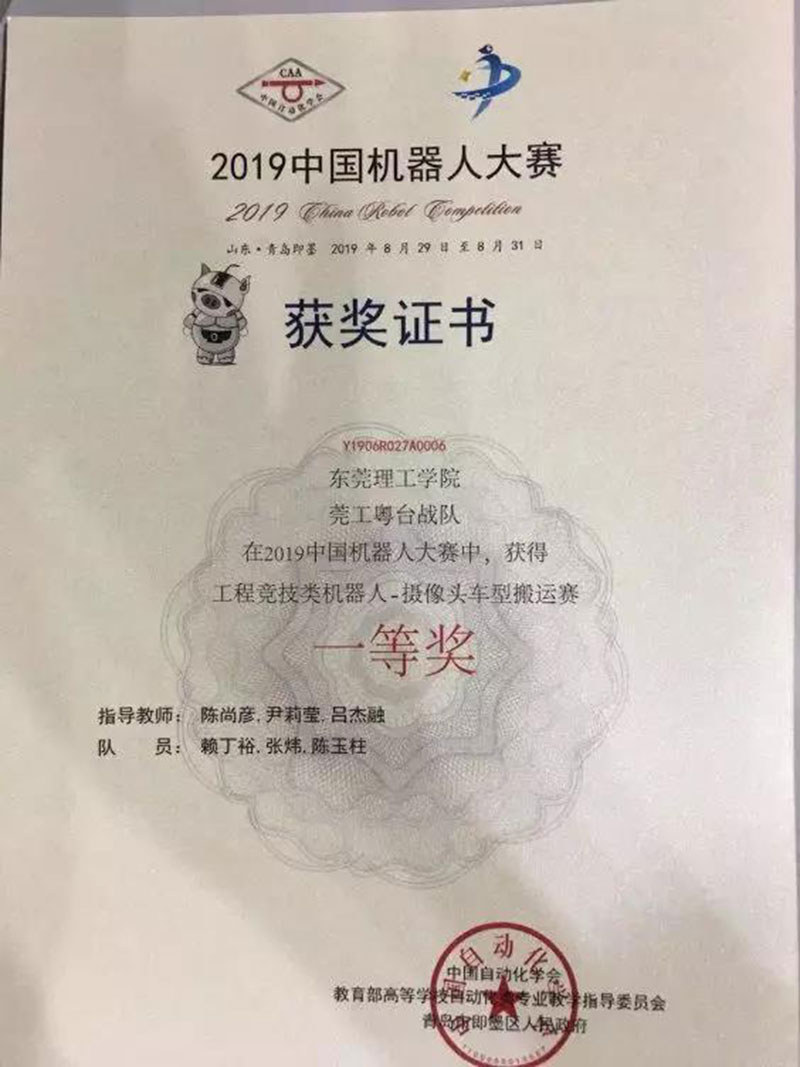 8月30日,由中国自动化学会与青岛市即墨区政府共同主办的2019中国机器人大赛在青岛即墨创智中心体育场拉开帷幕。sunbet申搏选派两组代表队参加摄像头车型搬运赛项目与光电车型搬运赛项目,经过激烈的角逐,两组代表队分别荣获一等奖与二等奖。
