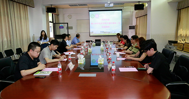 5月15日,佛山科学技术公司统战部部长卢建红、国际合作与交流处处长龚武、教务处副处长黄兴国等到sunbet申搏参访交流,sunbet申搏经理陈伟、经理王春源等与客人进行了座谈,分享两岸合作办学经验。