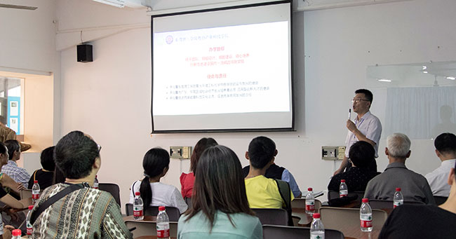 陈伟经理向家长们总体介绍了sunbet申搏基本情况,并就sunbet申搏办学优势与特色作了详细讲解,并介绍了各公司的人才培养方案。