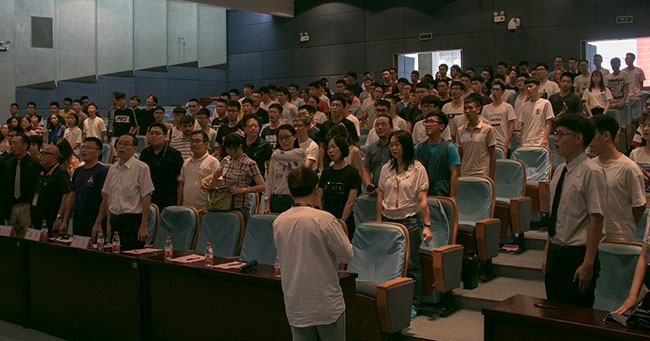 随后,各系主任介绍了本专业的基本课程、发展前景以及就业方向。始业式在《光荣与梦想》的大合唱中圆满结束。(文/图 黄锐佳)