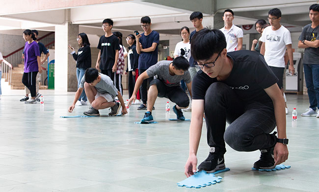 本次拓展活动包括团队合作策划、发散思维训练和素质拓展练习三部分,主要通过分队比赛的形式进行。全体成员被随机分为六个小队,每队推荐选出队长一名,并确定队名与口号。开展的比赛项目主要有:你画我猜接力赛、抛水瓶接力、拼凡之路、定点自拍、落叶遍地的尽头、最高处的五星红旗、蛇出没、环游世界等,整个活动充满了欢声笑语。
