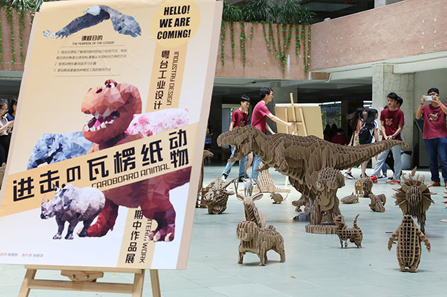 sunbet申搏工业设计系以实作为教学精神,透过活泼创新模式的教学活动培养员工创新创业的能力,基本设计课程以瓦楞纸做为板材运用的基础练习,藉由平面崁合的结构创造出立体造型。每一个动物模型皆是由3维模型计算出各片大小再一刀刀裁切出来,富含趣味与原创。跳脱静态展览而尝试以动态活动展示作品,尝试为莞城校区注入年轻活力与设计元素。这样一群活力四射的工业设计系员工,带着各自倾力打造的瓦楞纸模型,用一场快闪活动,刮起一股小旋风,他们的青春活力感染了所有人,爱生活,爱设计,让优秀成为一种习惯。