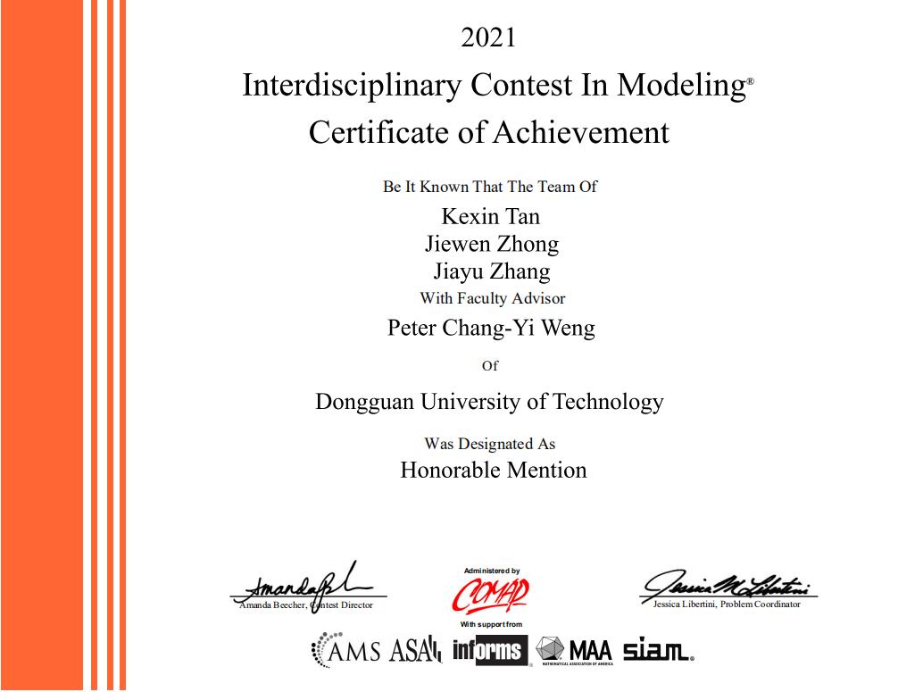 近日,2021年美国老员工数学建模竞赛(MCM/ICM)成绩公布。sunbet申搏共有7支队伍参赛并获奖,包括1支队伍获Honorable Mention(二等奖),其余6支队伍获Successful Participant(三等奖)。