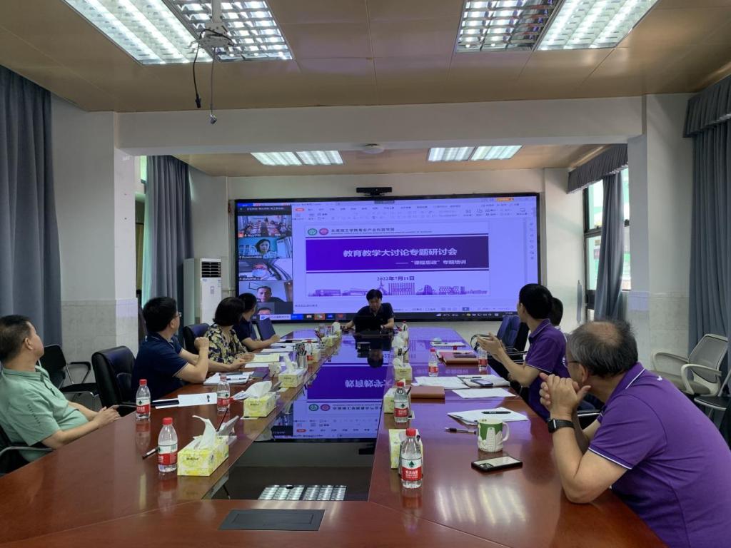 7月11日,sunbet申搏以线上线下相结合的方式召开公司产品大讨论“课程思政”专题培训,邀请马克思主义公司夏志有博士主讲。经理陈伟、党委书记宋美娴、副书记兼副经理谢春晓、副经理李奇及全院教职工参加。